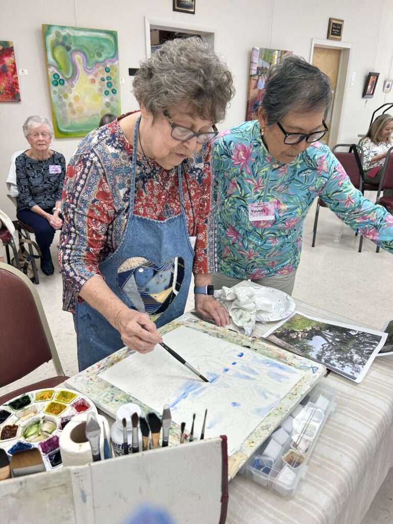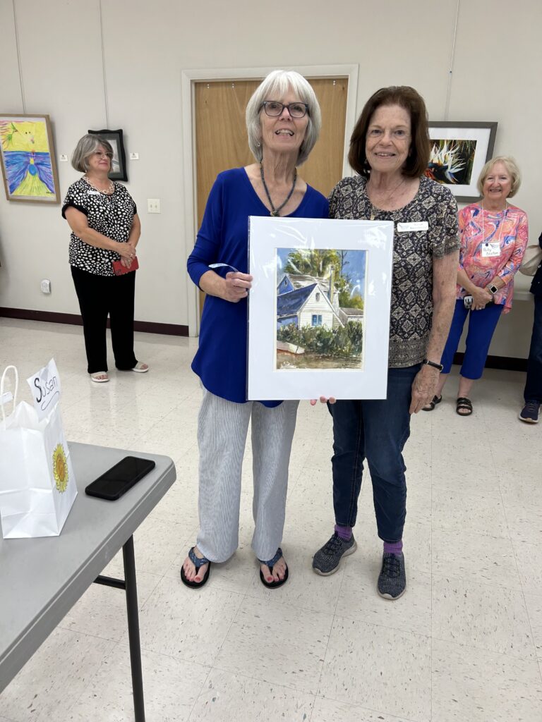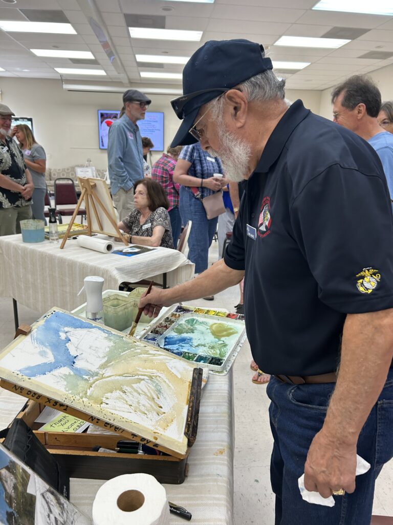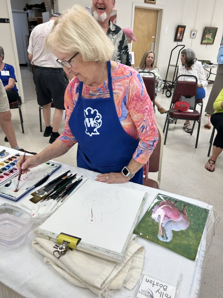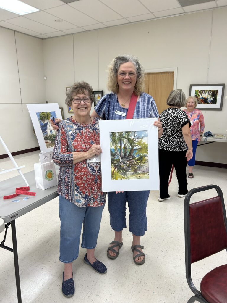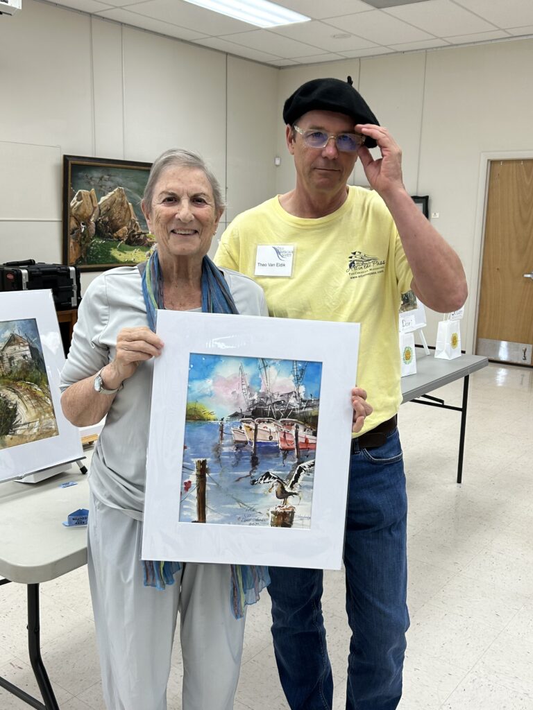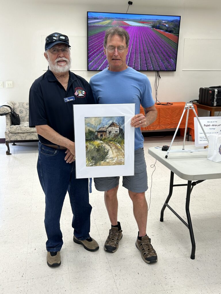 At the end, the painting returned to the original artist for the finishing touches. Each painting was dried, matted and auctioned off with proceeds to the CWS funds for future demos. The final works and the auction winners: